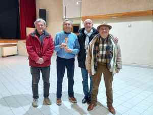 La phase 2 de la Coupe Loubatière a eu lieu le dimanche 23 mars 2025. Rappelons que Caumont avait accueilli la phase départementale de cette coupe en novembre 2024 et était parvenu à qualifier une équipe. L'équipe qualifiée de Caumont a été intégrée au groupe Sud D qui a joué à Nîmes le 23 mars. Ce groupe ne comportait pas moins de 12 équipes avec des grands clubs comme Montpellier et Nîmes. L'équipe de Caumont était constituée de Raphaël Frait, Georges Clocher, Antoine Ubeda et Fabien Gaubert (voir photo). Cette équipe a fait un excellent parcours en remportant 2 rondes contre Frontignan et Avignon et en ne s'inclinant que contre l'équipe Montpellier 1 qui a terminé seule première invaincue de la journée. Caumont se classe finalement 5ème sur 12 à égalité de points avec le 3ème mais avec un moins bon départage. Notre équipe n'est dons pas dans les 3 qualifiées mais peut être très fière de sa prestation !